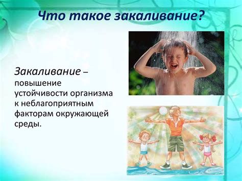 Закаливание — это комплекс мероприятий, направленных на повышение устойчивости организма к неблагоприятным воздействиям окружающей среды.